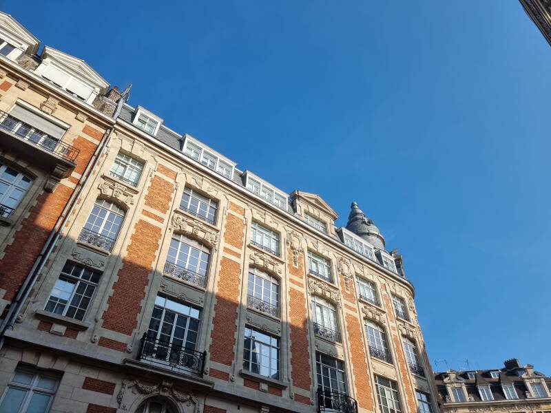 Aan de overkant staat een rij van de meest bewonderde gevels van Lille. Nu ingepalmd door chique kledingwinkels en hotel Le Moulin d’Or maar ooit waren dit 14 privéhuizen, gekend onder de naam Le Rang de Beauregard, gebouwd in de 17e eeuw en sinds 1966 geklasseerd als historisch monument en terecht één van de grote schatten van Lille!