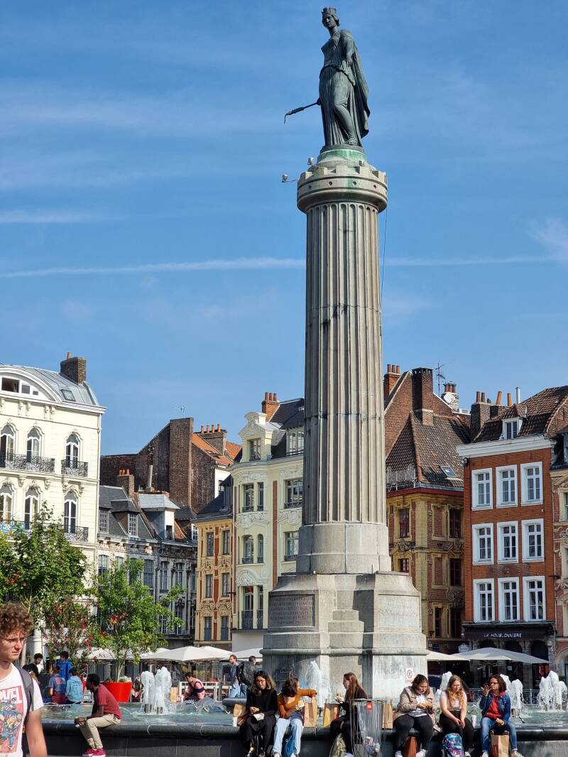 En dan hebben we nog, midden op de Grand’Place, onze godin, 17 m hoog op haar kolom met opborrelende fonteintjes aan haar voeten. La Colonne de la Déesse herinnert de bevolking aan de opstand van de Fransen tegen de Oostenrijkers eind 18e eeuw. Vandaag is de Grand’Place dat verzet allang vergeten. Vandaag is dit een levendige en bruisende plek en een geliefde ontmoetingsplaats van de jeugd, omringd door muziek en zomerse potplanten.