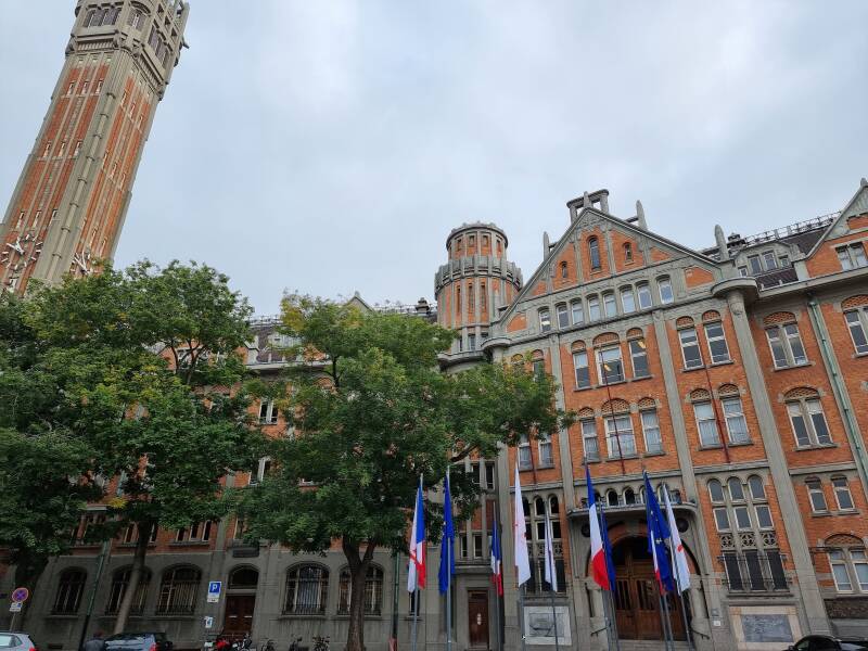 Net buiten het centrum en zichtbaar van ver, in oranjerode baksteen en grijze beton, met zijn 104 m is het belfort veruit het hoogste gebouw van Lille. De toren is gebouwd in 1932 als onderdeel en in dezelfde stijl als het nieuwe stadhuis dat tijdens WO I verwoest werd. Als een herinnering aan de vroegere wachttorens, die onze steden bewaakten, staat het belfort klaar om met zijn ronddraaiende schijnwerper alarm te slaan bij het minste gevaar (dat hopen we – dat denken we).