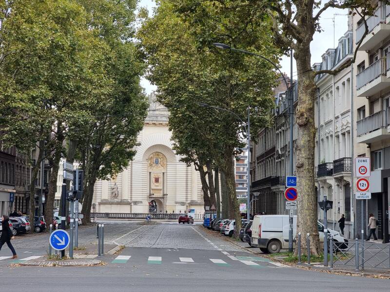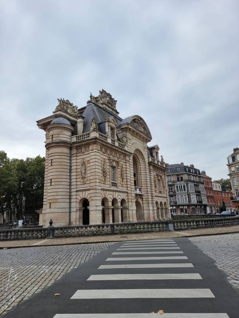 Deel van de stadsmuren van Lille was de Porte de Roubaix een echte verdedigingspoort. Dat merk je nog aan de dakkantelen en de grote gleuven van de ophaalbrug. De zijgangen links en rechts zijn in de 19e eeuw gemaakt zodat de tram erdoor kon rijden. Ook monumenten moesten zich aanpassen aan de nieuwe tijd! De tram rijdt niet meer en de stadspoort geeft nu toegang tot een stadspark of hoe een enkel bouwwerk een hele stadsgeschiedenis kan vertellen.
