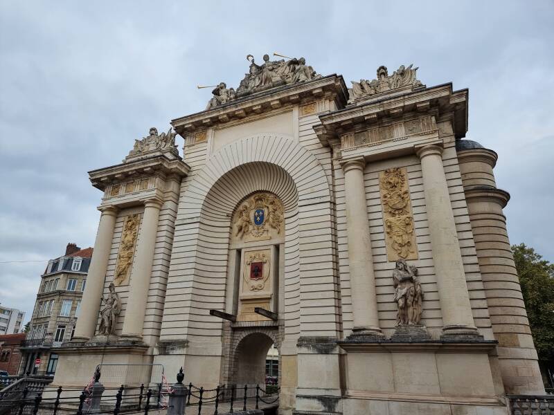 De Porte de Paris in Lille bijvoorbeeld was indertijd niet alleen een stadspoort maar ook een monument ter ere van Lodewijk XIV die in 1667 de stad heroverd had op de Spanjaarden. Verdediging en machtssymbool in 1 triomfantelijke boogpoort en de decoratie liegt er niet om: godenfiguren die kracht en oorlog voorstellen, Franse lelies en Victoria met een lauwerkrans tussen engelen die de overwinning blazen op hun bazuin. Statige trappen geven toegang tot een miniparkje, in Franse stijl aangelegd.