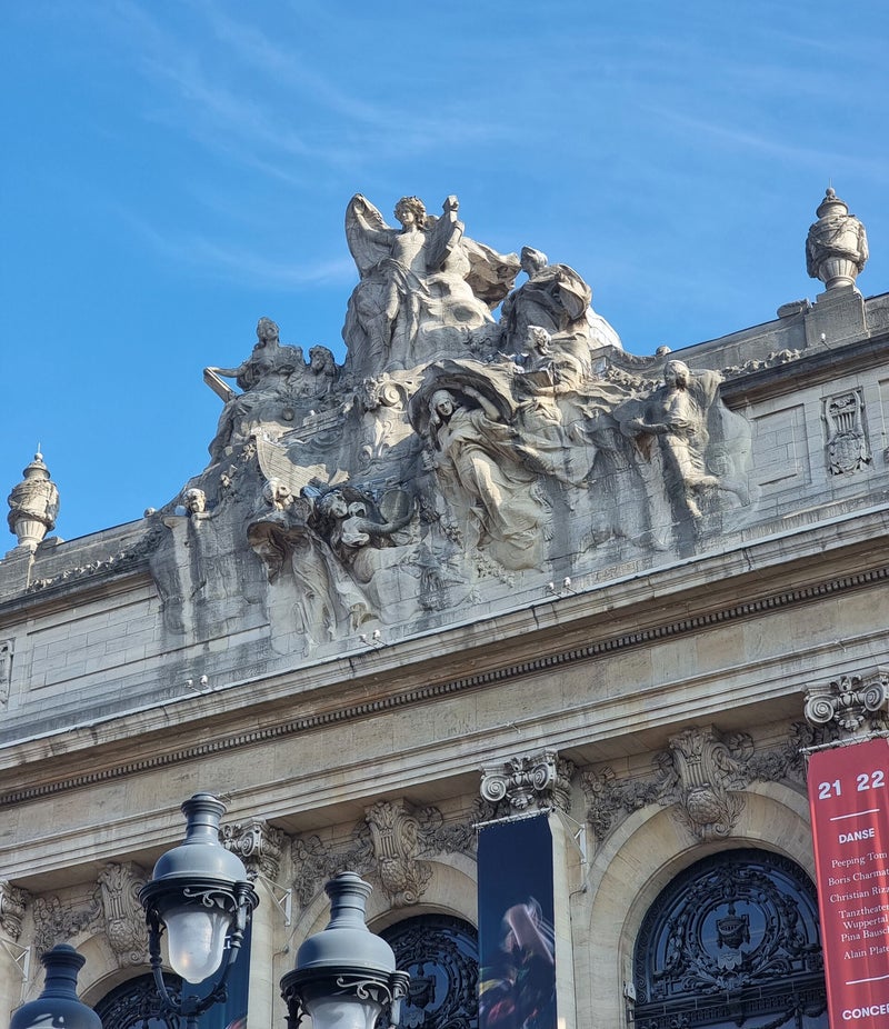 Mijn eerste echte kennismaking met wat Lille aan bezienswaardigheden te bieden heeft, is dit opvallende plein waar architecten eeuwenlang hun uiterste best hebben gedaan om mooi, mooier en mooist te creëren, alsof je op een ontploft barokke feestje staat. Je kan niet naast l’Opéra de Lille kijken, een gebouw weelderig als een Italiaanse diva, een gevel met de fantasierijke afbeelding van de muziek en het drama, bekroond met een gigantisch beeld van Apollo en zijn muzen.