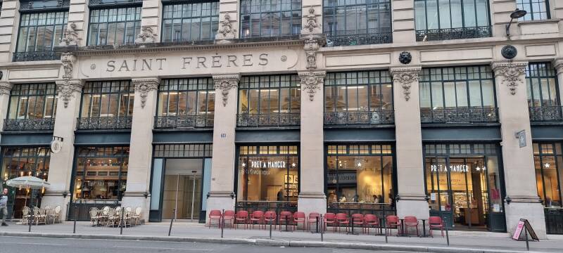 Mis de opvallende gevel van Saint Frères niet in de Rue du Louvre 34 – 36. Nu een verzameling brasseries met kantoren op de bovenverdiepingen, vroeger de hoofdzetel van de succesvolle textielonderneming Saint Frères, gespecialiseerd in de productie van jutezakken voor de landbouw en de industrie, De 3 broers van de weversfamilie Saint (what’s in a name?) vestigden zich in 1896 in dit luxueuze gebouw met romantische accenten en gietijzeren balkons. Een weerspiegeling van de letterlijke en figuurlijke rijke familiegeschiedenis die begon in een klein dorp in Noord-Frankrijk en eindigde in de hoofdstad.