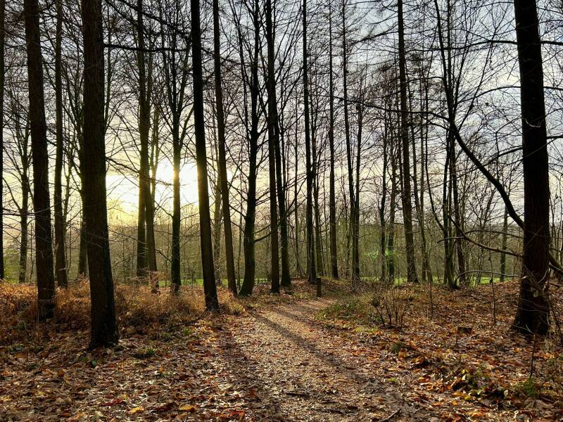 Kaal en dor en bruin want het wintert nog en voorlopig is het bos zonder muziek want zelfs de vogels hebben zich teruggetrokken in deze korte dagen met spaarzaam licht.