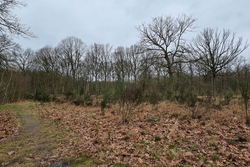 Tussen knooppunt 33 en 34 duiken we het bos in of eigenlijk het gebied van Hoogheide waar bos en heide elkaar afwisselen en waar hard gewerkt wordt om de natuurlijke inheemse vegetatie te herstellen.