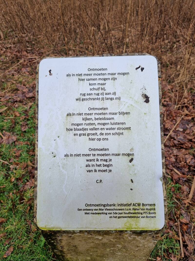 Recreatiedomein ‘Breeven’ zorgt voor een rust- en pauzepunt langs de tocht. het gedicht en de ontmoetingsbank hoeven geen verder uitleg.