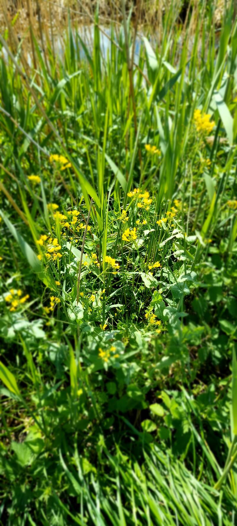 Witte stervormige bloemetjes van vogelmelk in het gras aan de rand van het pad maar opgelet, want dit schattige plantje is giftig! Alleen kijken, niet aankomen! Een verwaarloosde en overwoekerde ruïne van een WO II bunker, de eerste grote en kleine boten, het nieuw aangelegde Katelijnepark, over de loopplanken onder de Ringweg rond Brugge en via de Katelijnepoortbrug met zicht op de watertoren van de Gentpoortvest wandelen we zo het historisch centrum in.