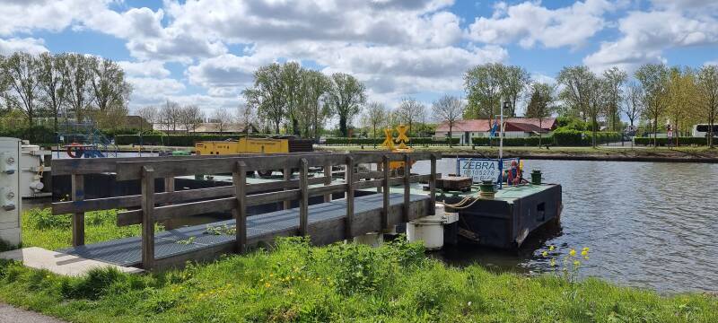 Op het autovrije fiets- en wandelgedeelte naast de straat merken we een richtingwijzer ‘Brugge’. We zitten goed! Het is fijn lopen tussen water en groen struikgewas. Een doorkijkje aan de oever geeft zicht op de plezierboten van de Beernemse jachthaven.