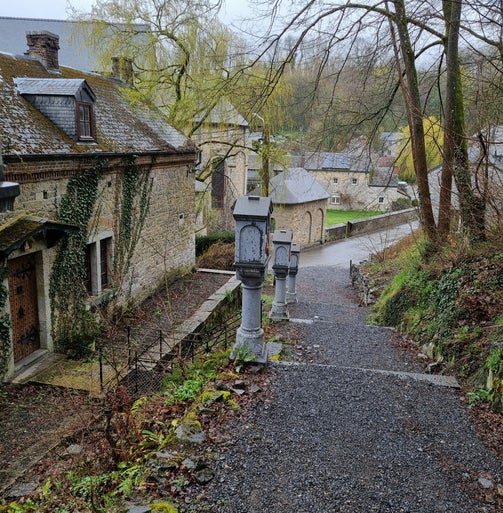 De kruisweg, die naar de hoger gelegen Sint-Hadelin hermitage leidt, is zeker de inspanning en de omweg waard. Op dit hoogste punt in Celles zijn de vergezichten ronduit prachtig.