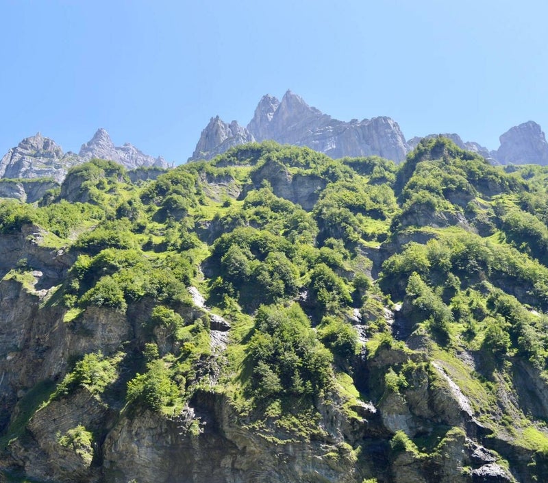 Eerste stop wordt Le Clos op 990 m. Vanaf daar gaat het licht stijgend omhoog langs een aantal passerelles of loopbruggetjes en hangbruggetjes over de rivier, waardoor de wandelroute kan ingekort worden en aan de andere oever teruggaat naar de parking. Het laatste bruggetje, de Passerelle du Fond de la Combe op 1060 m, geeft aansluiting op een extra route naar Le Bout du Monde. Zoals de naam het doet vermoeden, is deze rotswand op 1260 m hoogte het eindpunt van de vallei. Het bergpadje vol keien naar het einde van de wereld is echt een uitdaging want toch smaller, steiler en moeilijker begaanbaar dan gedacht. Nog maar pas op weg, klinkt het geluid van een laag overvliegende helikopter - een reddingshelikopter - dat belooft weinig goeds. Hogerop wordt er naast het pad geland - omkeren voor de wandelaars is de boodschap - einde van de extra wandeling.