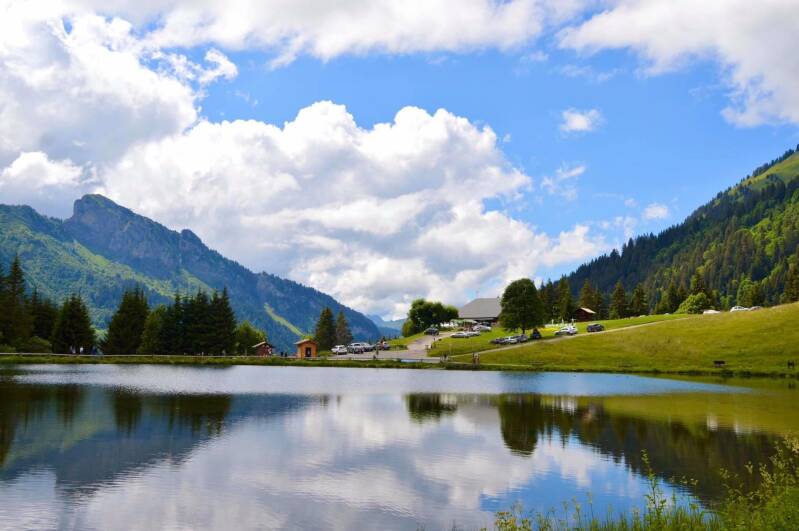 Via een steil boomwortelpad gaat de route terug naar het meer, dat als een groen tapijtje ingekaderd ligt tussen de alpenweiden, de coniferenbossen en de merkwaardig gevormde rotsen. Er is nog genoeg energie over om een rondje rond het meer te lopen. Die wandeling maakt deel uit van een geoparkroute met veel infoborden over de fauna en flora van de Chablais streek.