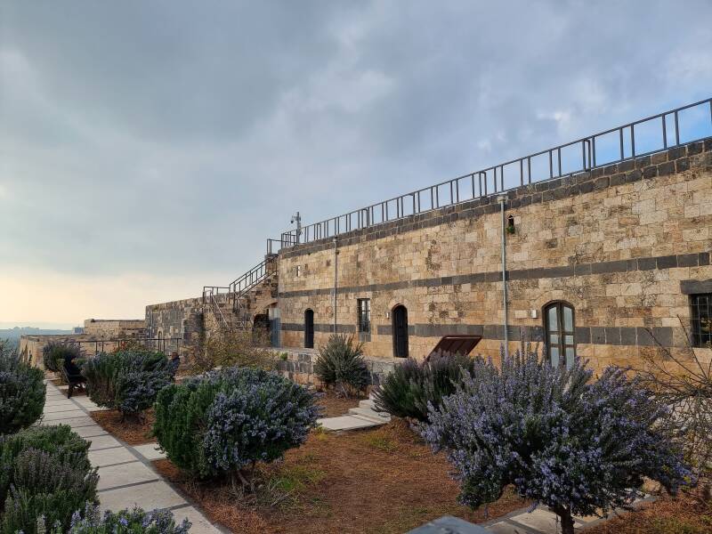 Wat maakt het hier zo bijzonder? Wat is zo fascinerend aan deze plaats en wat maakt het de moeite waard om zo ver te rijden over hobbelige wegen? Veruit met stip op 1: de ligging en het uitzicht! Op een heldere dag (en die hadden we jammer genoeg niet – het was heiig en wazig en mistig) zie je vanaf het uitkijkplatform zowel het Meer van Galilea (of het Meer van Tiberias) in Israël, de Golanhoogten in Syrië en de berg Hermon in Libanon liggen. Umm Qais ligt op het kruispunt van 3 landen en heeft in zijn lange geschiedenis, van de oudheid tot nu, heel wat conflicten vanop de eerste rij meegemaakt.