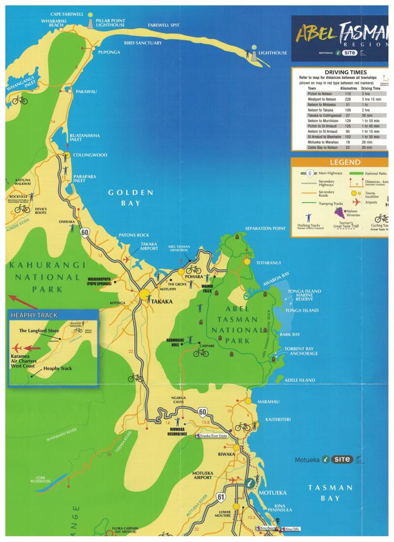 We voelen ons een klein beetje Abel Tasman die in 1642 met zijn bemanning in Golden Bay voor anker ging en daarmee voor een primeur zorgde: hij was de eerste Europeaan die Nieuw-Zeeland bezocht al duurde zijn verblijf slechts 5 dagen, werden 4 van zijn mannen gedood en zijn schepen verjaagd door de plaatselijke Maoristammen. Tasman noemde de baai dan ook Moordenaarsbaai. Later werd het Blind Bay en Massacre Bay en Coal Bay om uiteindelijk Golden Bay (Mohua in het Maori) te worden nadat er in 1857 goud werd gevonden.