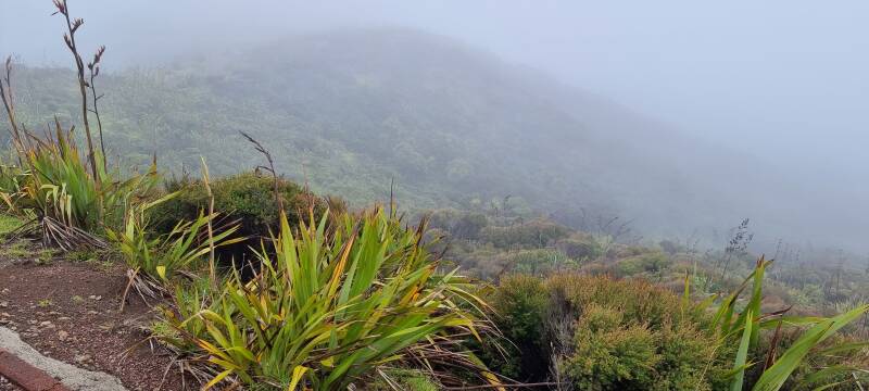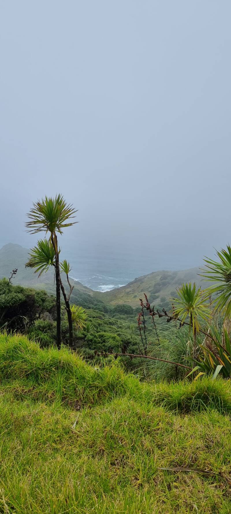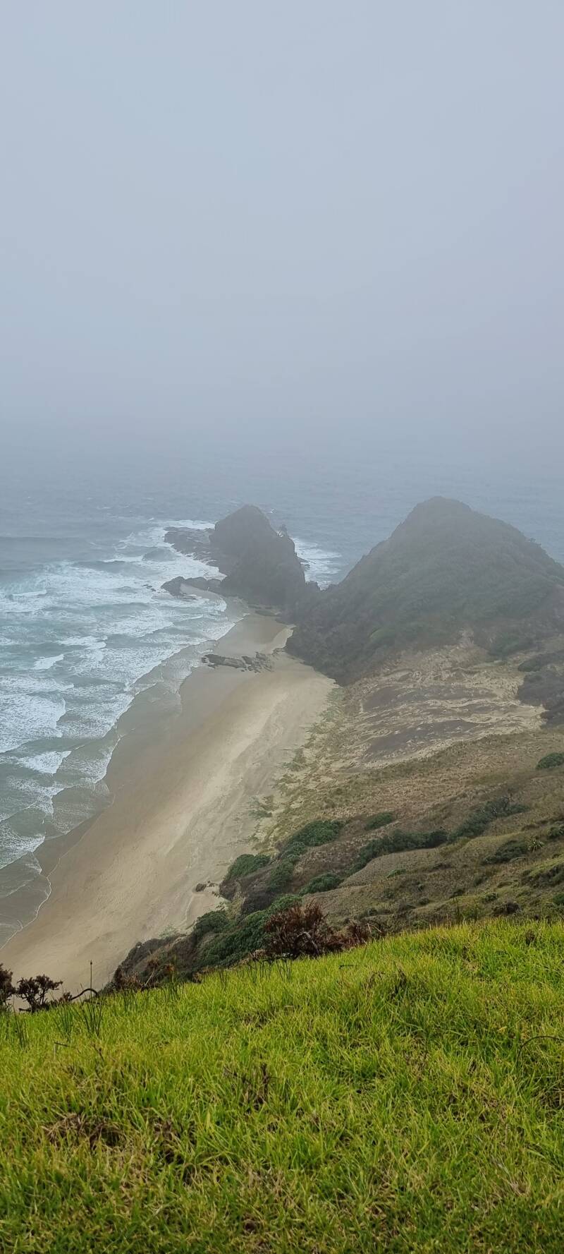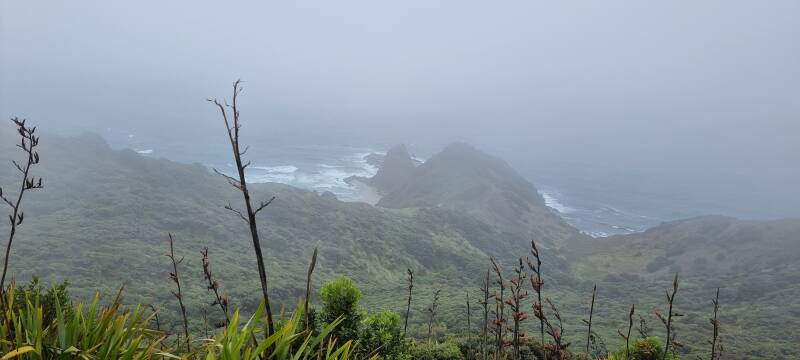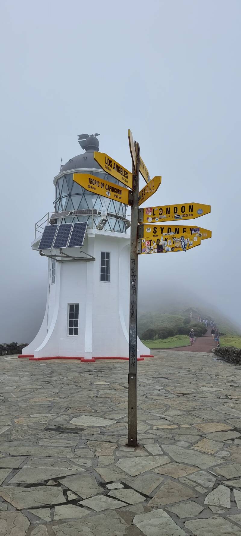 De infoborden langs het wandelpad zorgen voor afleiding en geven uitleg over de belangrijke betekenis van deze culturele site. We lezen over de Māori mythes, de geschiedenis van Three Kings Islands en ‘Meeting Point’, waar zee en oceaan elkaar ontmoeten in een eeuwig gevecht zonder winnaar. Echter, waar de Tasmanzee eindigt en de Stille Oceaan begint, is ondanks het ietsepietsie optrekken van de mist nauwelijks te onderscheiden.
