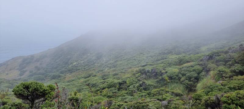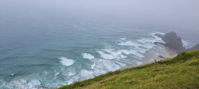 En dan zorgt een piepkleine opklaring voor net voldoende zicht om met open mond te kijken naar die kleine witte vuurtoren in de verte, omgeven door de diepgroene kleuren van inheemse planten en struiken en de blauwe en paarse en grijze schakeringen van zee en oceaan.