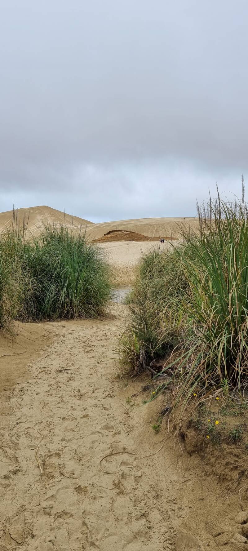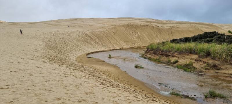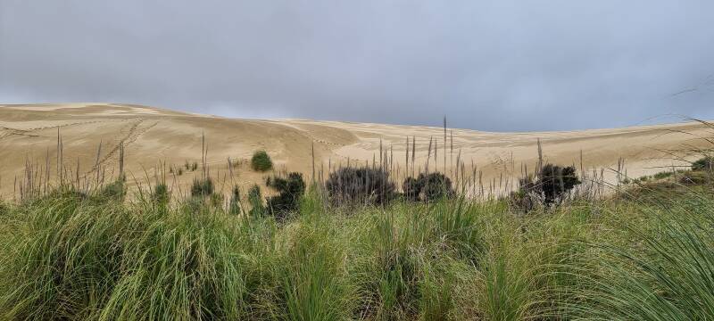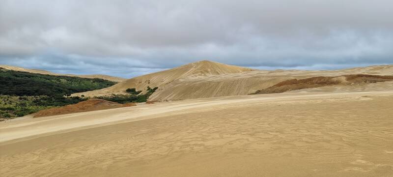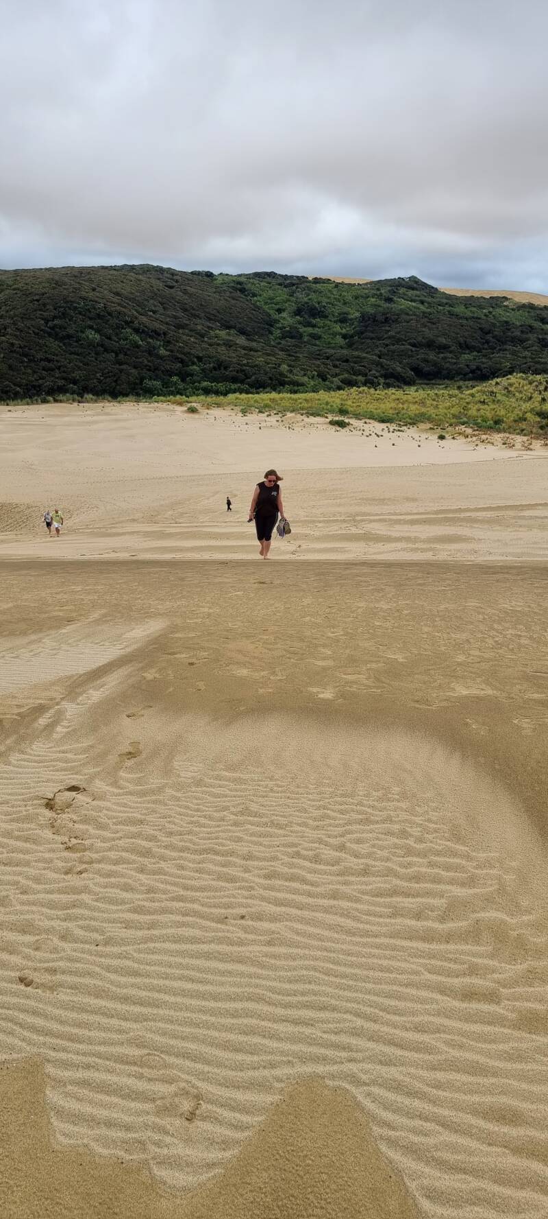 Het ‘Te Paki Recreation Reserve’ op 20 km van Cape Rēinga (de laatste 4 km zijn onverhard) heeft een meer dan leuke toeristische attractie in de aanbieding: de Giant Sand Dunes. En gigantisch zijn ze zeker en vast! Over een oppervlakte van 10 km² of zo ver je oog reikt, zie je alleen maar golvende zandbergen, tot wel 150 m hoog.