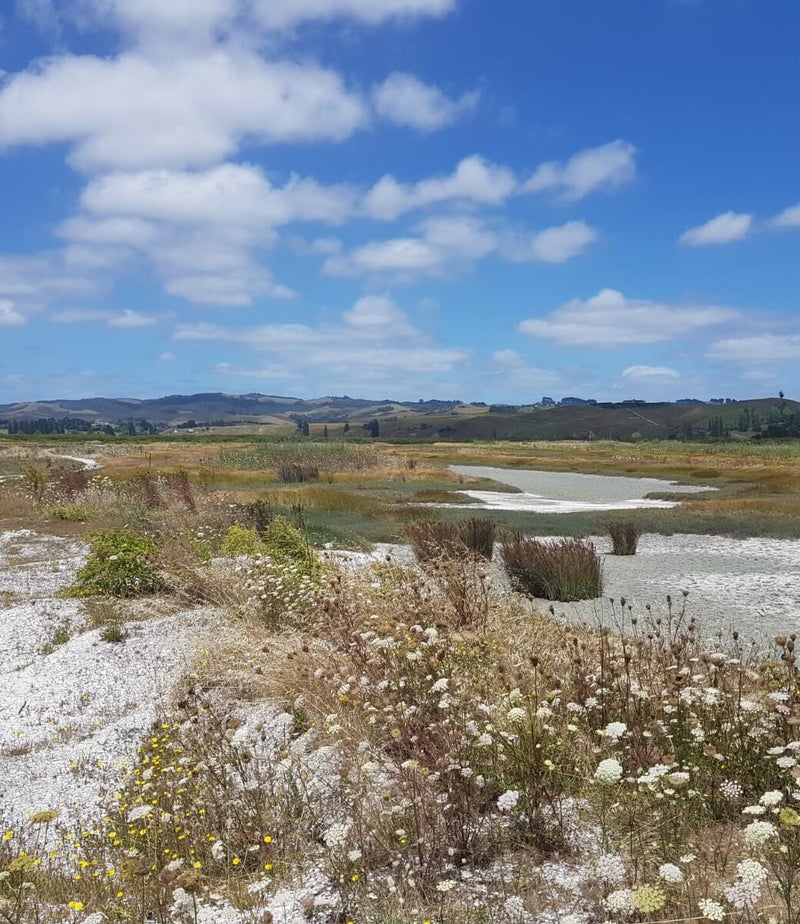 Gelukkig treffen wij een zeer gepassioneerde vrijwilliger-gids, die ons toont wat er allemaal tussen de 3 à 4 duizend witte en grijze en bruine stipjes zit: wrybill - banded dotterel - godwit - stilt ... zoekend naar voedsel of gezellig dutten in de zon. Hier kan een mens uren naar kijken! Voor wie niet zo into vogels is, de merkwaardige kustlijn en de speciale begroeiing van zeekraal en wilde venkel zorgen voor een heerlijke wandeling.