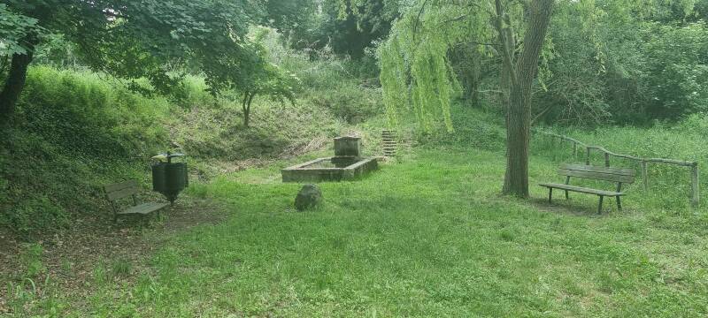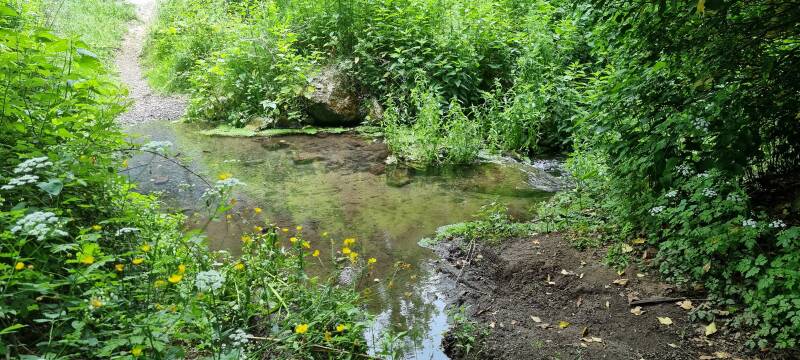 Een beekje zoekt kabbelend zijn weg te midden van stapstenen en struikgewas. Een open plek en een picknicktafel nodigen uit tot een pauze want de zuiderse zon weet ons flink op te warmen. Wat gedroogde vruchten, een energiereep en een friszuur citroendrankje, we kunnen weer verder.