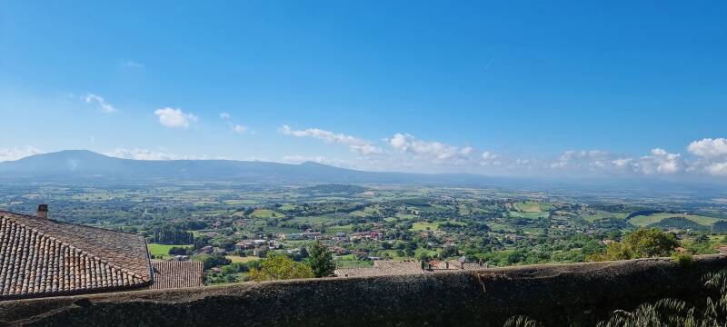 Het 360-gradenuitzicht over de omgeving is onvergetelijk! Van noord naar zuid, van west naar oost …. vlakbij het Meer van Bolsena, in de verte de stad Viterbo en aan de horizon de donkere lijn van de Apennijnen.