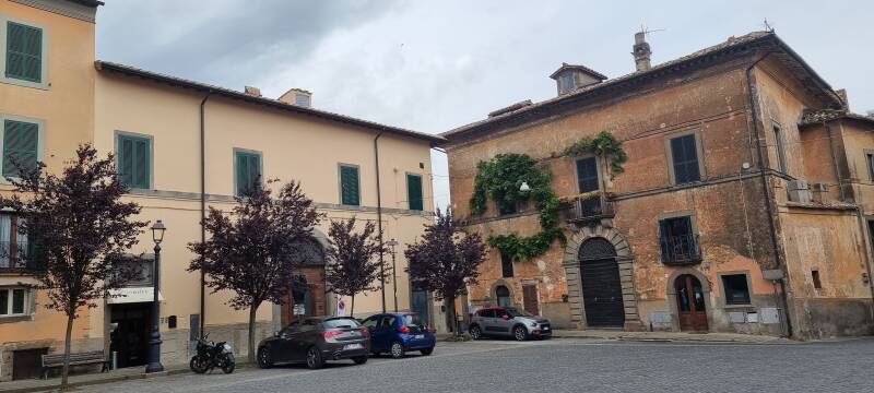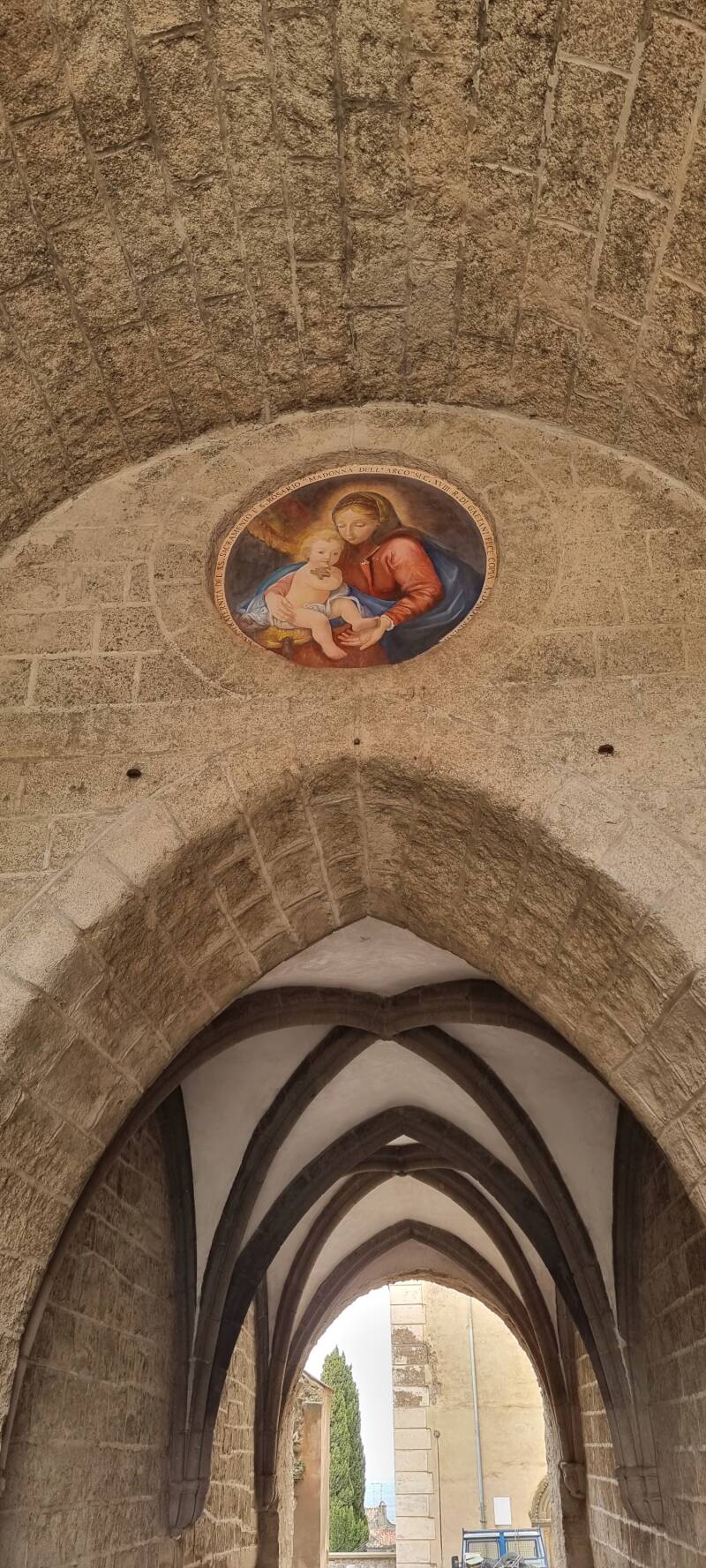 Een donderslag en wat regendruppels later opent het bos zich naar rustige plattelandsweggetjes. Heuvel op, heuvel af tot het asfalt ons naar een gehucht van Viterbo brengt. Heel charmant, heel middeleeuws met een indrukwekkend inkompoort en een ommuurd klein centrum waar de tijd sinds de 17e eeuw schijnbaar stil is blijven staan.