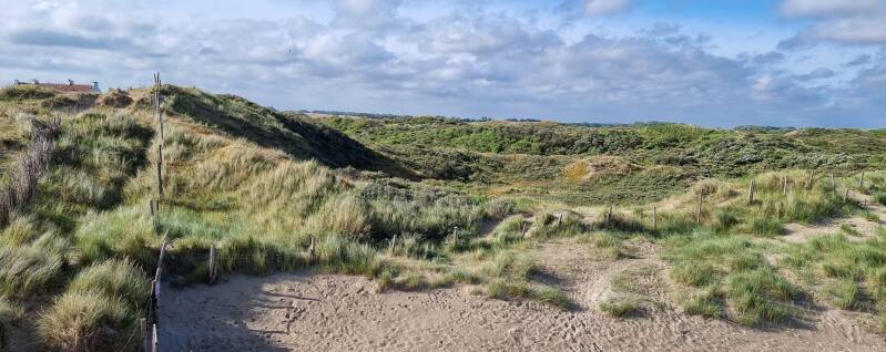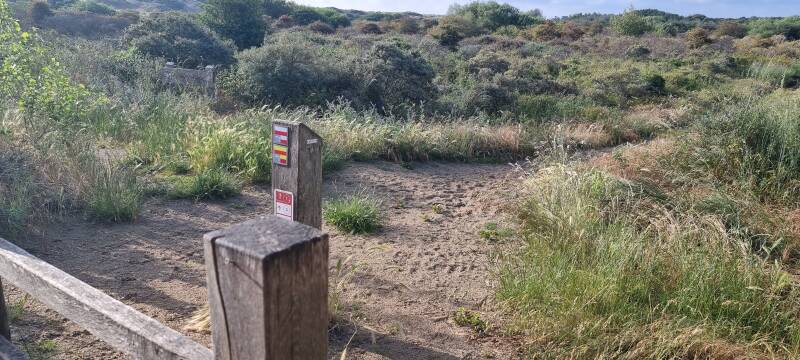 Terug naar knooppunt 2 want daar begint onze kustwandelroute. Keurig aangegeven met een rechthoekig bord met het knooppuntnummer en een richtingpijl. Verdwalen is bijna onmogelijk en anders blijf je gewoon de 67 km lange kustlijn volgen.