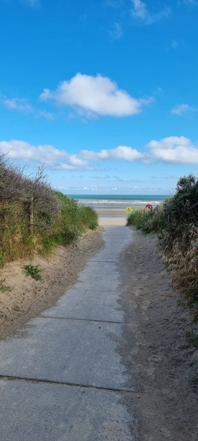Van de dijk naar het strand, van het strand naar de dijk, die afwisseling maakt de tocht een stuk leuker. Voetstappen in het zand, een verdwaalde zeeraket, een mosgroene golfbreker, witte schuimkopjes op een veelkleurige zee maar ook een lange rij saaie blokkendozen op de brede boulevard. Het groen en geel en blauw en rood van de speeltuigjes lacht vrolijk naar de grijze eentonige gebouwen.