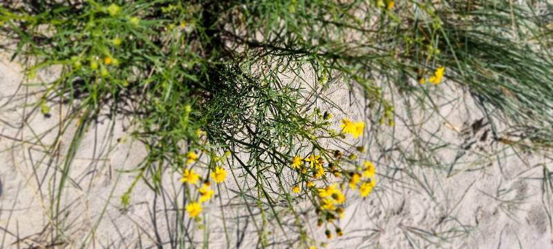 Al dat wandelen én de gezonde zeelucht doet ons een hongertje krijgen en dat betekent lunch. De brede en gezellige strandpromenade van Nieuwpoort-Bad met zijn overdekte zitbanken is daar de perfecte plaats voor. De bokes met roerei smaken verrukkelijk, de benen krijgen wat rust en de gele bloemen van het duinkruiskruid geven kleur aan de omgeving.