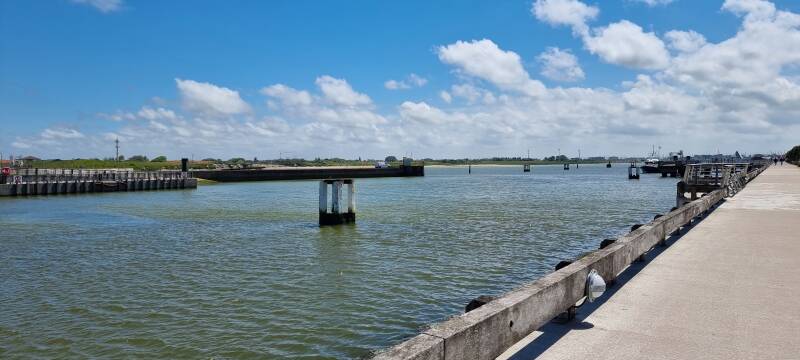 We zullen het geweten hebben aan knooppunt 85: de veerboot, die ons naar de overkant van de havengeul moet brengen, vaart enkel in het weekend, op feestdagen en tijdens de schoolvakanties. En vandaag is een doodgewone normale woensdag. Het wordt een omweggetje van 3 km over de houten Havengeulpromenade en de Paul Orbanpromenade, een blijkbaar erg populaire wandeling gezien de drukte. Toch is het fijn en lekker ontspannend dat slenteren langs de IJzermonding, de groene parken, de Oude en de Nieuwe Jachthaven en langs heel wat bezienswaardigheden. Efkes de toerist uithangen en een portie cultuur meepikken in wat haast een openluchtmuseum is!
