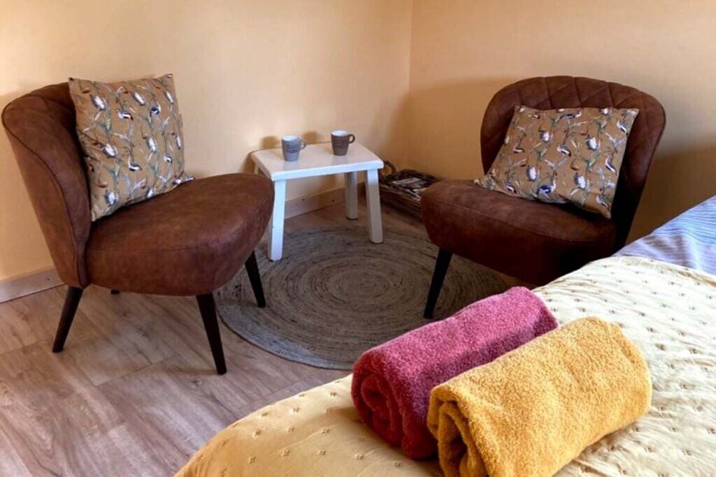 Voorzieningen: keukentje met koelkast, magnetron, kookplaat, potten en pannen, koffiezetapparaat en waterkoker, koffie en thee, uitgebreid ontbijt en extra voor de lunch, gratis wifi