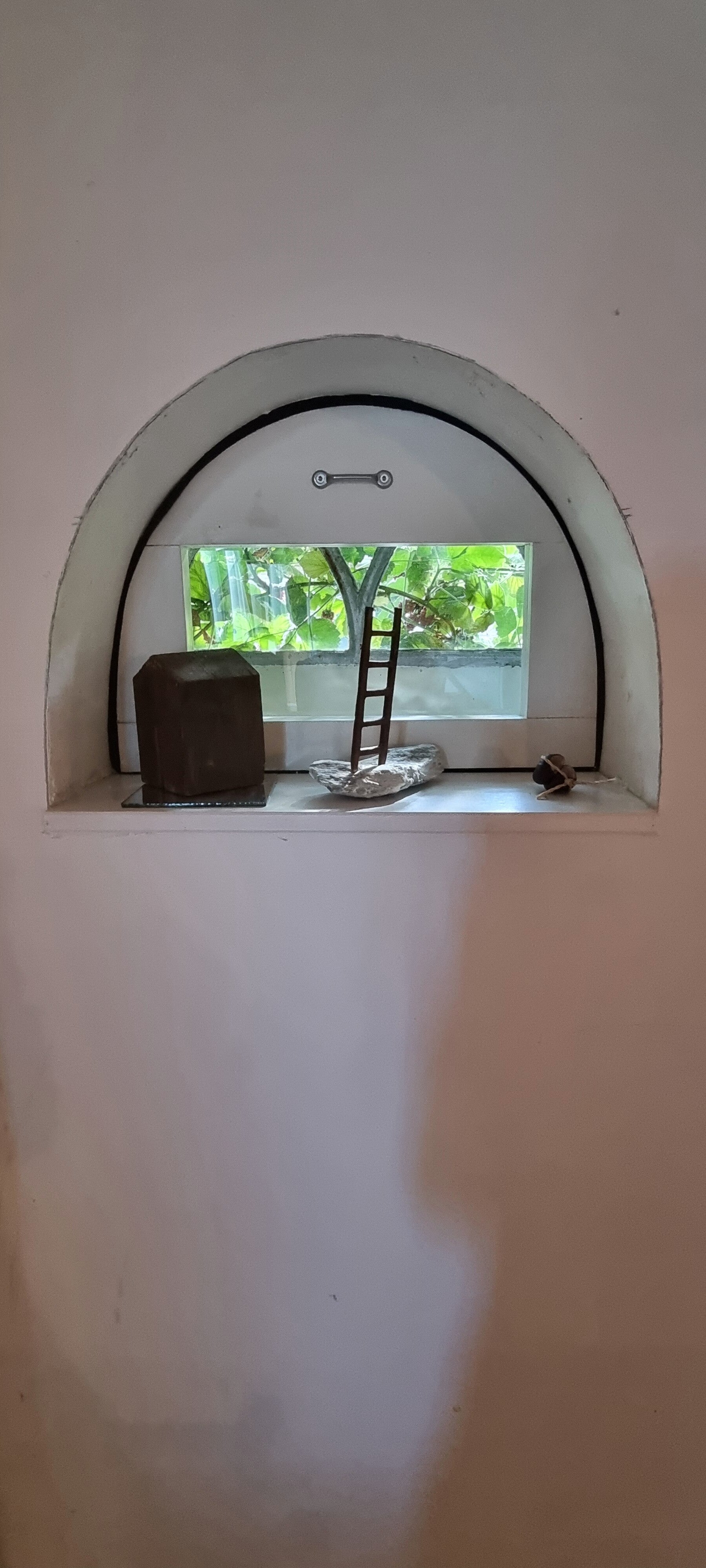 Wat een fantastische plek om uit te blazen na onze eerste Pieterpad-etappe. Niet alleen compleet voorzien van alles wat een wandelaar nodig heeft voor een ontspannen dageinde en een nieuw dagbegin maar ook nog eens heel origineel ingericht met kunst aan de muren, kunst in de laatjes van de antieke letterkast, kunst in de kunstboeken ... en een kunstig veldmuisje snuffelend in de braamstruik voor het kleine raampje.