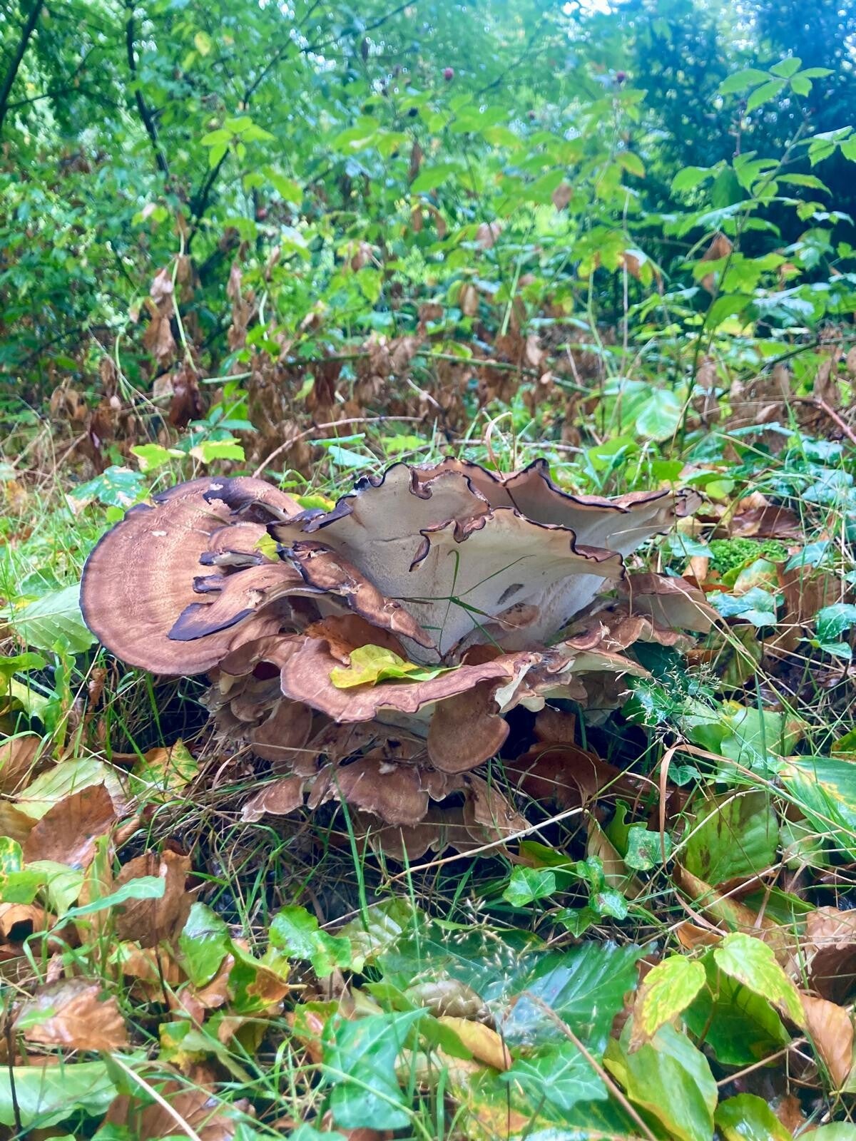 Onderweg naar Varssel en het bladerdak boven ons vangt de regendruppels op van een zachte septemberbui. Toch maar die regenjas aan? Ah, toch maar niet, teveel gedoe!