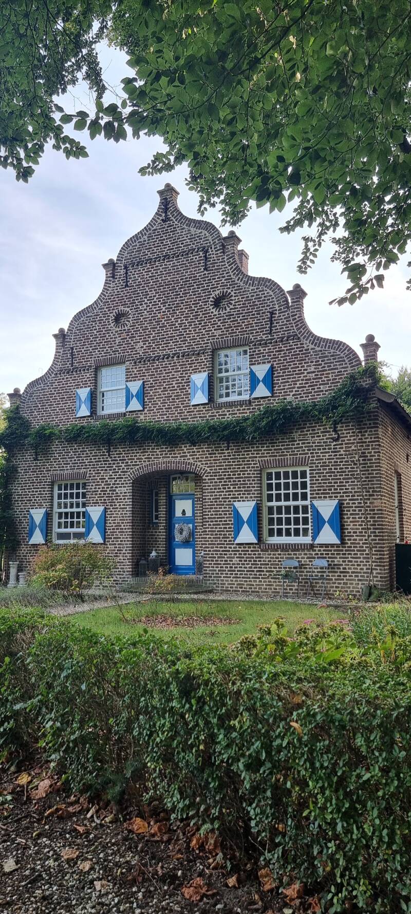 De buitenrand van Sint Odiliënberg stuurt ons langs maïs- en zonnebloemvelden en langs een wit hoevetje met weelderige tuin een onverhard pad op, het bosgebied door van ’t Sweeltje. Het is een fijn stukje route om even te genieten van ons stapritme: 3 tellen inademen, 3 tellen uitademen. We worden er helemaal zen van op de zanderige paadjes in deze oude stuifduinengordel.