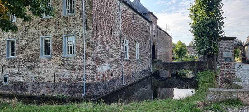 Al snel laten we de huizen van Swalmen achter ons en duiken het Limburgse landschap met zijn veldwegen, hagen en bossen in. Onbewust praat je stiller om de natuur niet te storen! Een smal paadje tussen hoge bomen verrast ons aan het eind met het eerste hoogtepunt van de dag: Kasteel Hillenraedt. Deze statige en sierlijke en opvallende waterburcht, omgeven door echte slotgrachten, staat al sinds de 14e eeuw langs de Eppenbeek, in het zicht van eindeloze weidelanden en akkers. De sfeer van elegantie en luxe zweeft nog rond de gebouwen en je gaat bijna automatisch denken: waar zijn de koetsen en de lakeien? Waar de adellijke dames? En zie ons hier lopen, absoluut niet gekleed op deze chique omgeving! Geen champagne en kaviaar maar water en boterhammen in de rugzak!