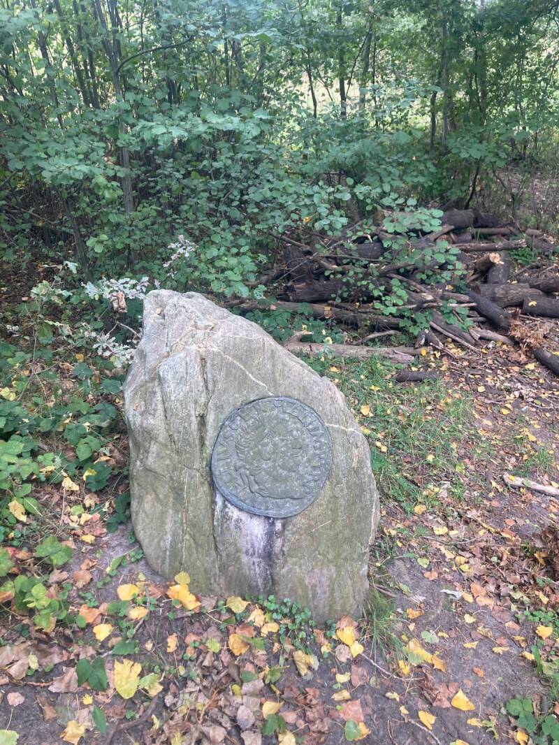 We steken een houten bruggetje over, gaan een houten trapje op, openen en sluiten een poortje en … vinden met een beetje geluk nog een deel van de Romeinse schat die hier in 2009, in het dal van de Vlootbeek, werd ontdekt. Een aantal uitvergrote afbeeldingen van de in totaal 65 zilveren en 6 gouden opgegraven munten zijn te zien in dikke rotsblokken in de graskant langs de vindplaats. Wie zou hier zijn Romeinse muntjes zo’n 2000 jaar geleden begraven hebben?