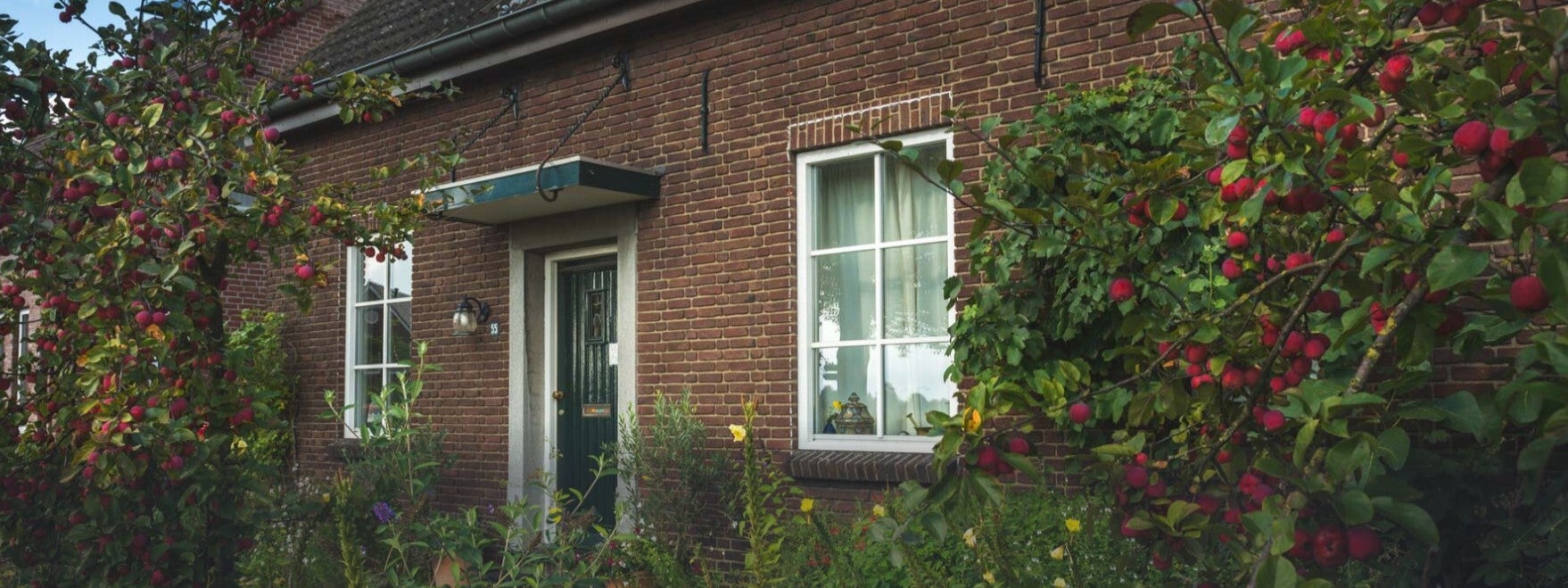 Aan de overkant van de weg mag je het pittoreske huisje tussen het groen niet missen. De verbouwde schuur uit 1745 kan zo in een sprookjesboek.